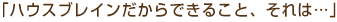 それがハウスブレインの役割であり、「ハウスブレインだからこそできること」なのです。 |